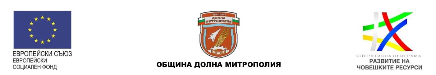 Проект № BG05M9OP001-2.018-0033-С01, „Интеграция на уязвими групи в община Долна Митрополия”. Проектът се осъществява с финансовата подкрепа на Оперативна програма „Развитие на човешките ресурси”2014-2020 , съфинансирана от Европейския социален фонд на Европейски съюз