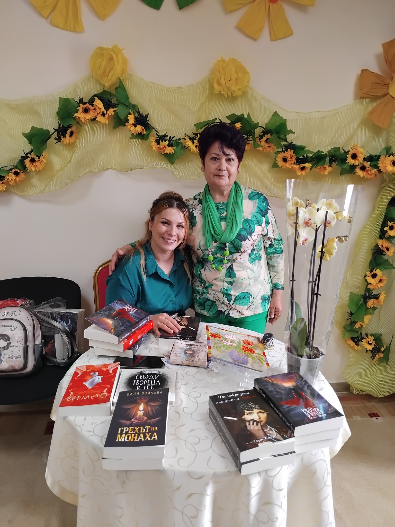 Удоволствие бе да посрещнем при нас прекрасната българска писателка – Даян Шаер. Трудно е да не обикнеш творчеството на Даян, щом веднъж се докоснеш до него, защото между редовете на книгите й има скрита магия. Невидима нишка, която те притегля, вълнува, води те на места, които в един момент те прегръщат, а в следващия разголват душата ти, карат те да се изгубиш, за да намериш ново парченце от себе си. В своите книги Даян чертае невидими мостове между миналото и бъдещето, мечтите и реалността, страха и силата, между болката и любовта, между нейния свят и този на читателя, разгръщащ страниците.