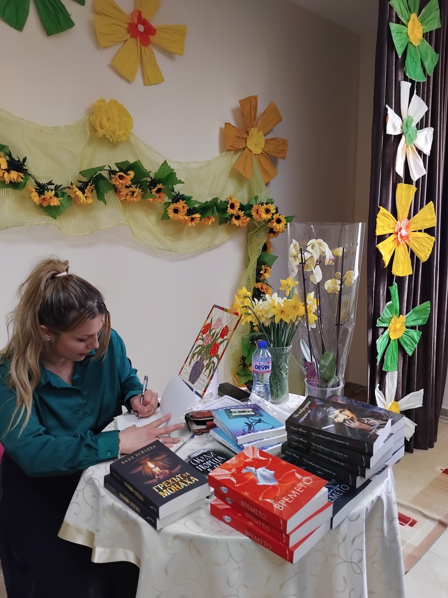 В залата, сред книгите и магията на думите, Даян Шаер изгря като слънце в пролетни багри, напук на студения априлски дъжд.
